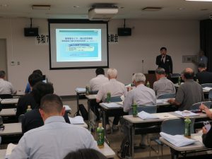 総会後には、研修会として「災害時等の事業継続について」と題して、大規模災害時が起きた時の対応方法などをあらかじめ検討しておくことの大切さやメリットについて、三井住友海上あいおい生命保険(株)による講演を行いました。終了後には、個別に質問をするなど関心の高さが見られました。