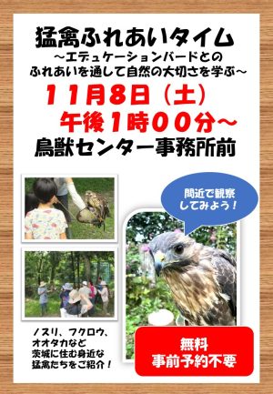 猛禽ふれあいタイム開催日のお知らせ(令和7年11月)