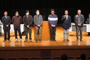 また、青年部が令和7年9月24日(水)に開催した「シャインマスカット果実品評会」の表彰式が行われ、最優秀賞(茨城県知事賞)受賞者の羽成 貴哉 氏(土浦市)をはじめとした5点、3名が表彰されました。品評会の受賞品を含む出品物8房については、9月25日~東京銀座の県アンテナショップ「IBARAKIsense」において特別販売を行い高品質な県産ぶどうのPRにつなげています。