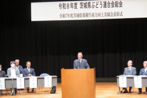 茨城県ぶどう連合会では、令和7年12月10日(水)、常陸太田市において冬季研修会及び令和8年度総会を開催し、会員93名、県・常陸太田市・JA等関係者29名が出席しました。