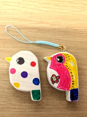 型取りした木材に、推しの鳥を自由なデザインで色付けしていただき、
