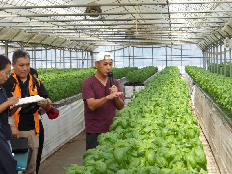 今回の農場見学は、鉾田市で大葉やハーブ等の有機栽培をしている(有)矢澤園芸で行いました。。
