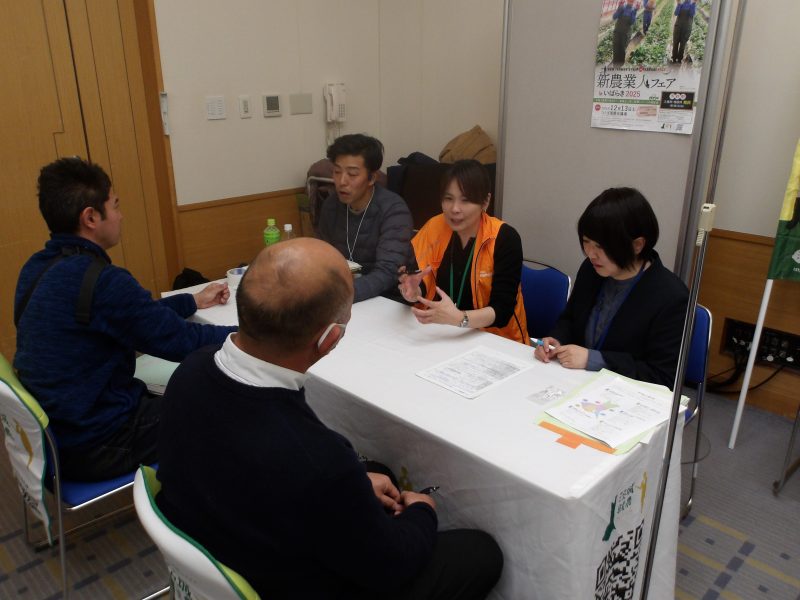 参加者は各ブースをまわりながら、就農に関する相談や、インターンシップや見学の申し込みを行い、具体的な働き方や支援制度について、それぞれの希望や課題に合わせた情報収集ができました。